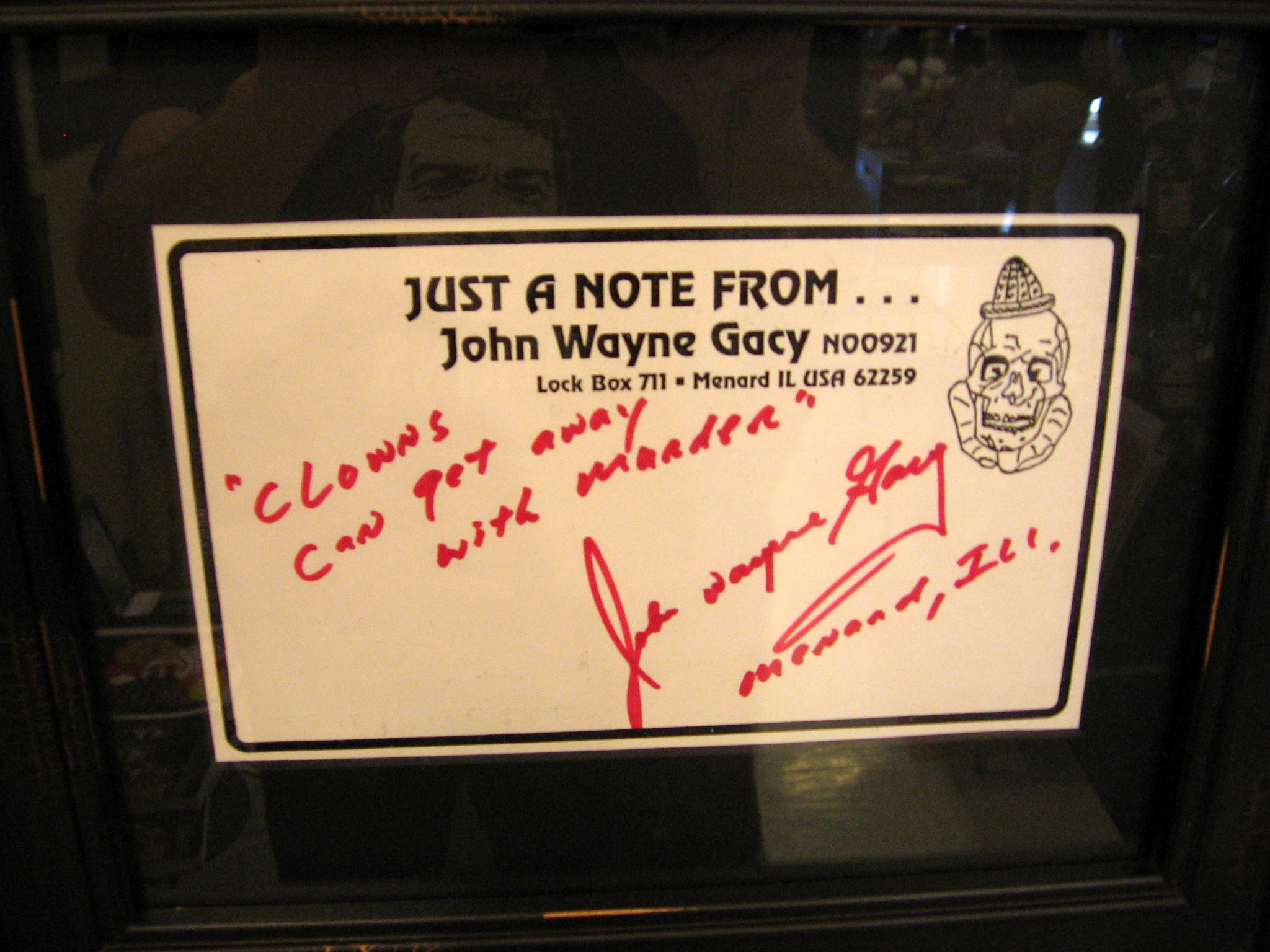 BS: Normally, no. This particular one seems like it was very difficult. I have a stack of correspondence between Gacy and the guy that commissioned it. This guy was a movie producer and he wrote and directed a movie about a serial killer in a wheelchair called HELL ON WHEELS. And so, he was writing to Gacy to get the serial killer perspective. Some of these letters – I mean, Gacy was always skirting around the issue of whether or not he was guilty. He always denied everything. He vehemently denied being a homosexual. In these letters, he talks about finding kids at the bus station and what he used to do with them. And he encourages this guy to do the same thing. He was trying to live vicariously through him. I don’t write serial killers for that very reason. You can get wrapped up in their nonsense, and they don’t have anything else to do, so they’re going to try to manipulate you for their own entertainment. But this guy was very aware of what was going on, and played along to get what he wanted, which was information about being a killer and what it was like and how it was. And eventually to commission this painting. I think it took him about 6 months through the letters. They went back and forth and finally he got this painting.