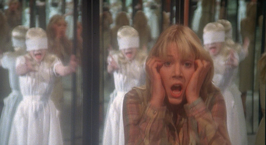 Scariest scene: Karen communicates mostly through mirrored reflections and whispers. In one scene, Ellie gets kind of possessed and starts writing the name “Karen” backwards on a glass window (“Nerak”) in a totally unnerving Redrum-style moment. And the funhouse scene where Karen appears in all the mirrors! Gasp!