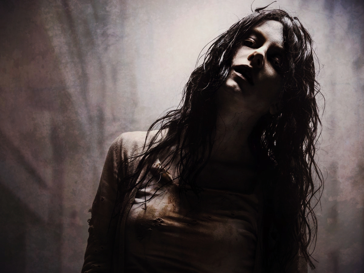 She was walking slowly forward from across the street, her dark, rain-drenched hair sticking to her skull, partially obscuring her dark eyes — which were turned toward the sky. She was shuddering, as if feverish. Her mouth began to open impossibly wide, the rain coursing down her throat. As she walked toward him, her black gaze turned to meet his eyes. Closing the distance, she began to lean toward him as she came uncomfortably close.