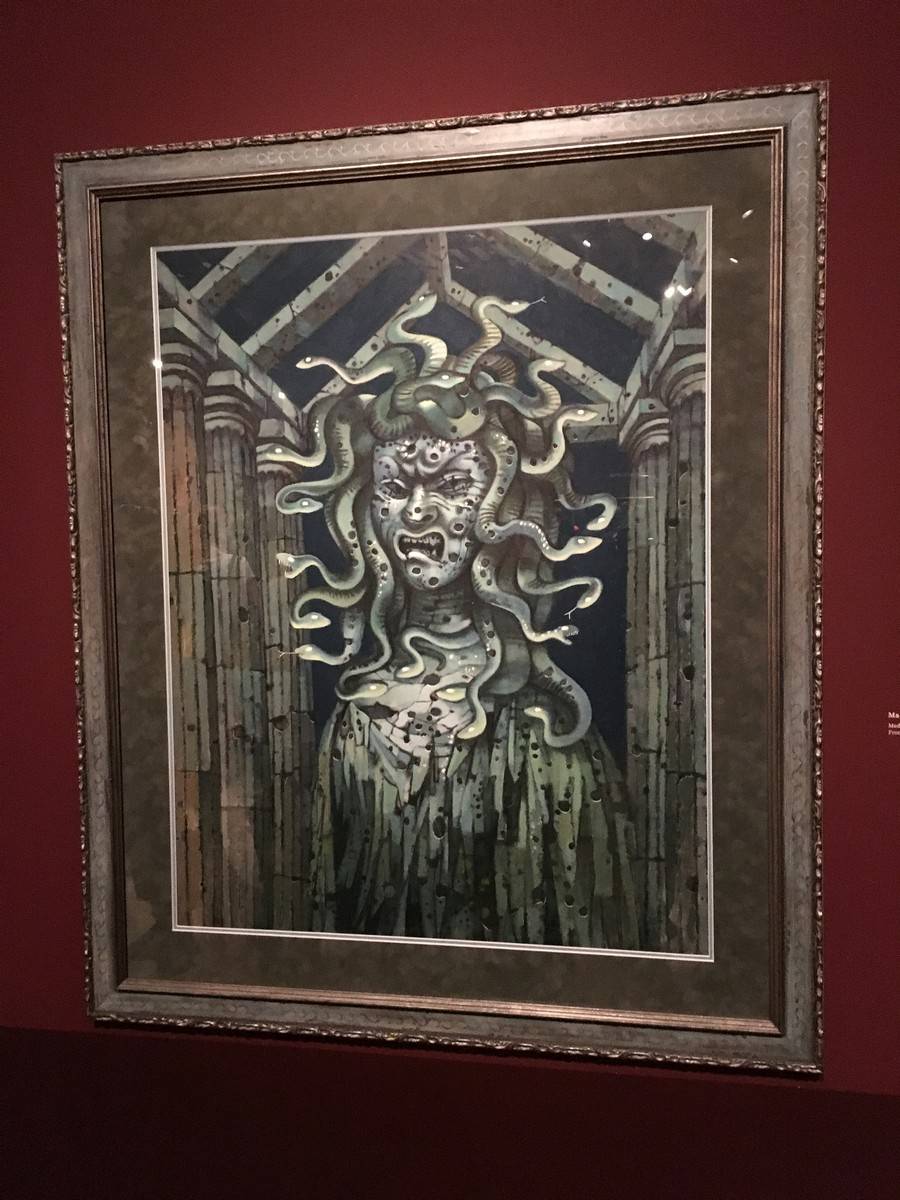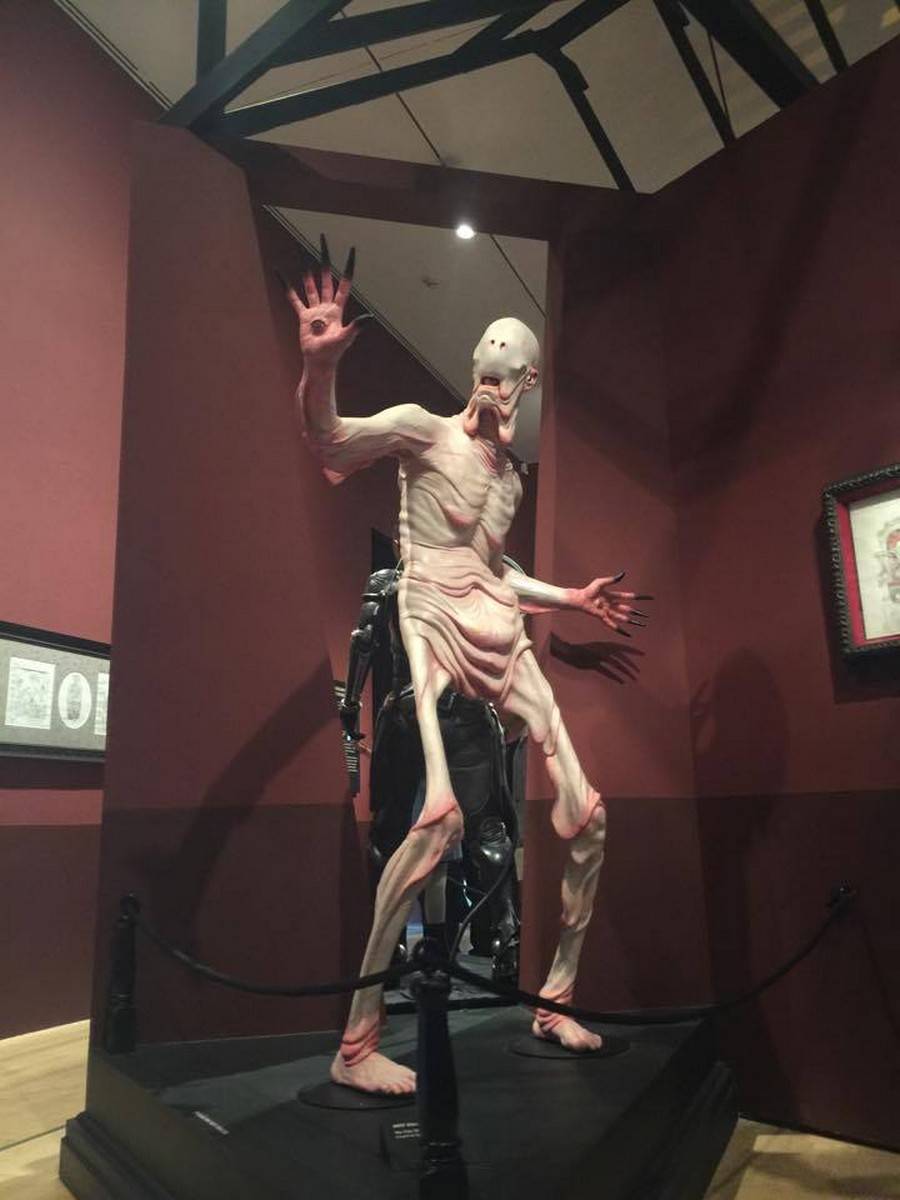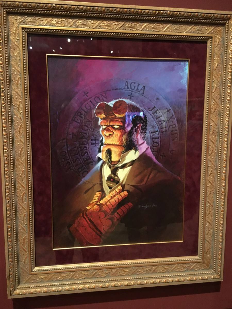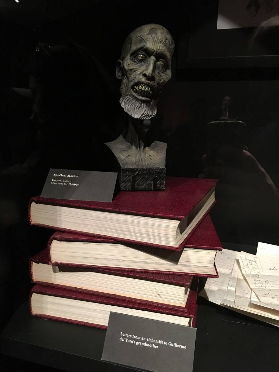 Now brace yourself. Because below, we’ve got tons and tons of photos and a bit of video to share with you from the exhibit, which is being called “At Home With Monsters.” Everything from original props, storyboards & concept art from all of del Toro’s own movies, original art from famous Disney films and attractions, the incredible life size sculptures of Tom Kuebler and Mike Hill, full room tributes to Frankenstein, Edgar Allan Poe, H.P. Lovecraft and so much more. Let’s start with a 2 minute video culled from little bits I captured on my iPhone.