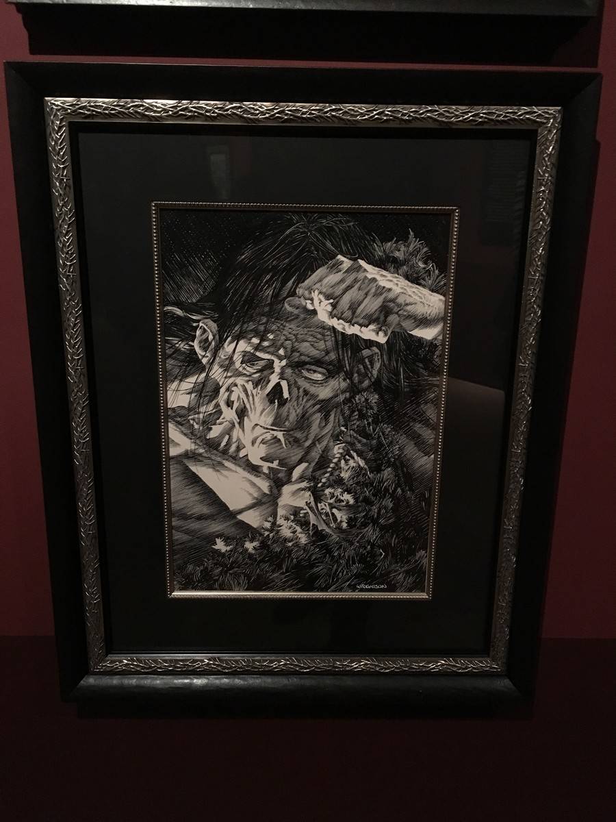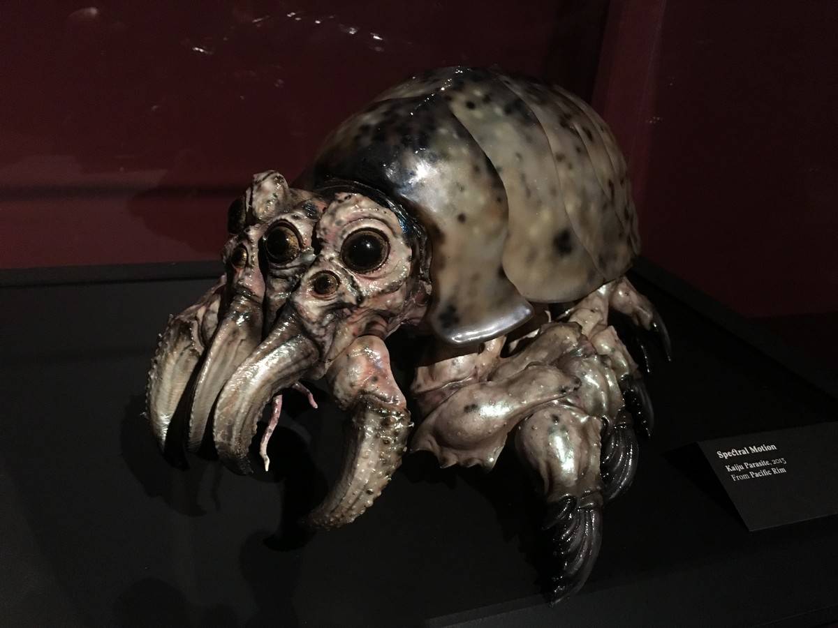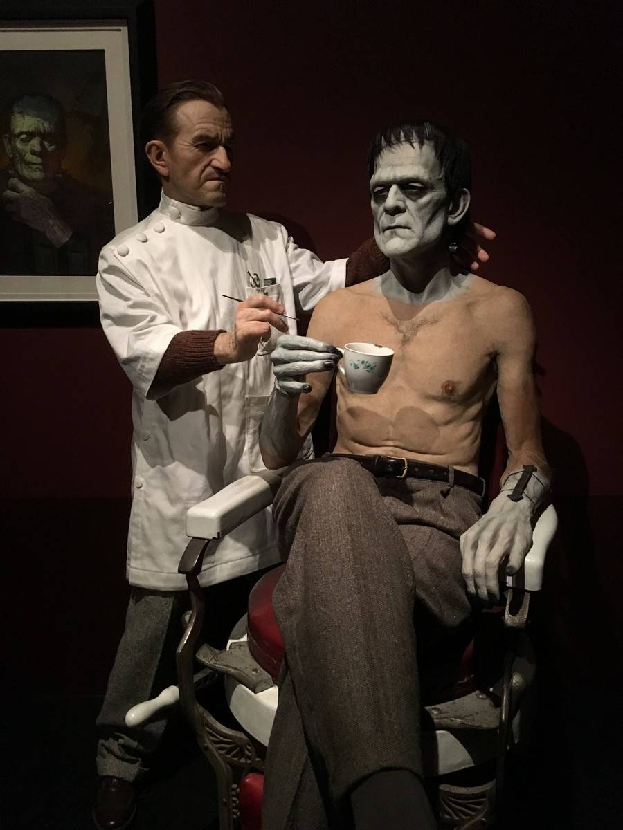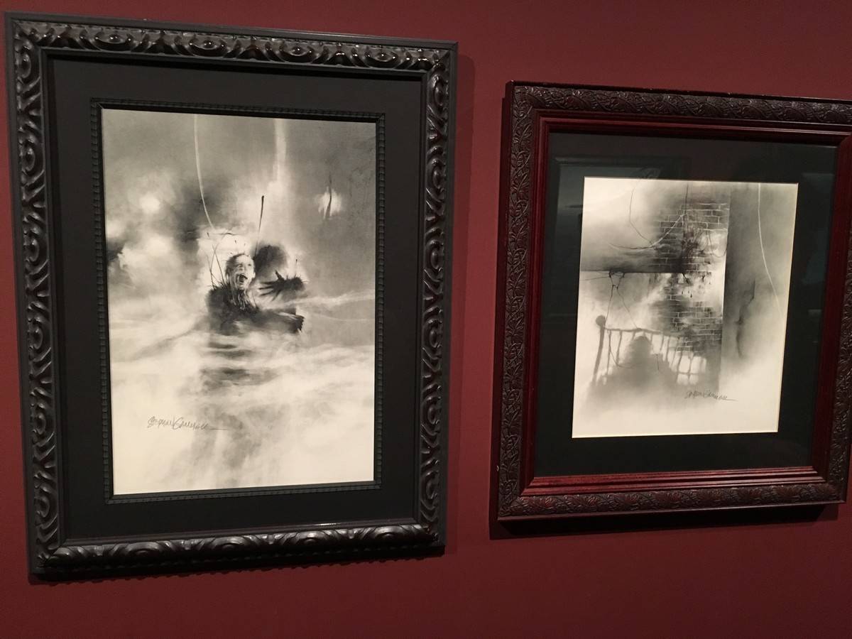 Now brace yourself. Because below, we’ve got tons and tons of photos and a bit of video to share with you from the exhibit, which is being called “At Home With Monsters.” Everything from original props, storyboards & concept art from all of del Toro’s own movies, original art from famous Disney films and attractions, the incredible life size sculptures of Tom Kuebler and Mike Hill, full room tributes to Frankenstein, Edgar Allan Poe, H.P. Lovecraft and so much more. Let’s start with a 2 minute video culled from little bits I captured on my iPhone.