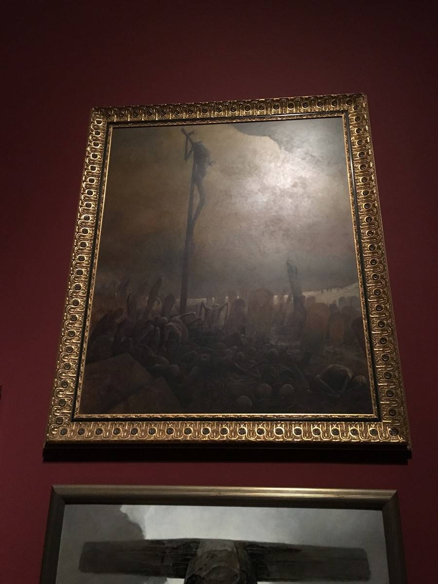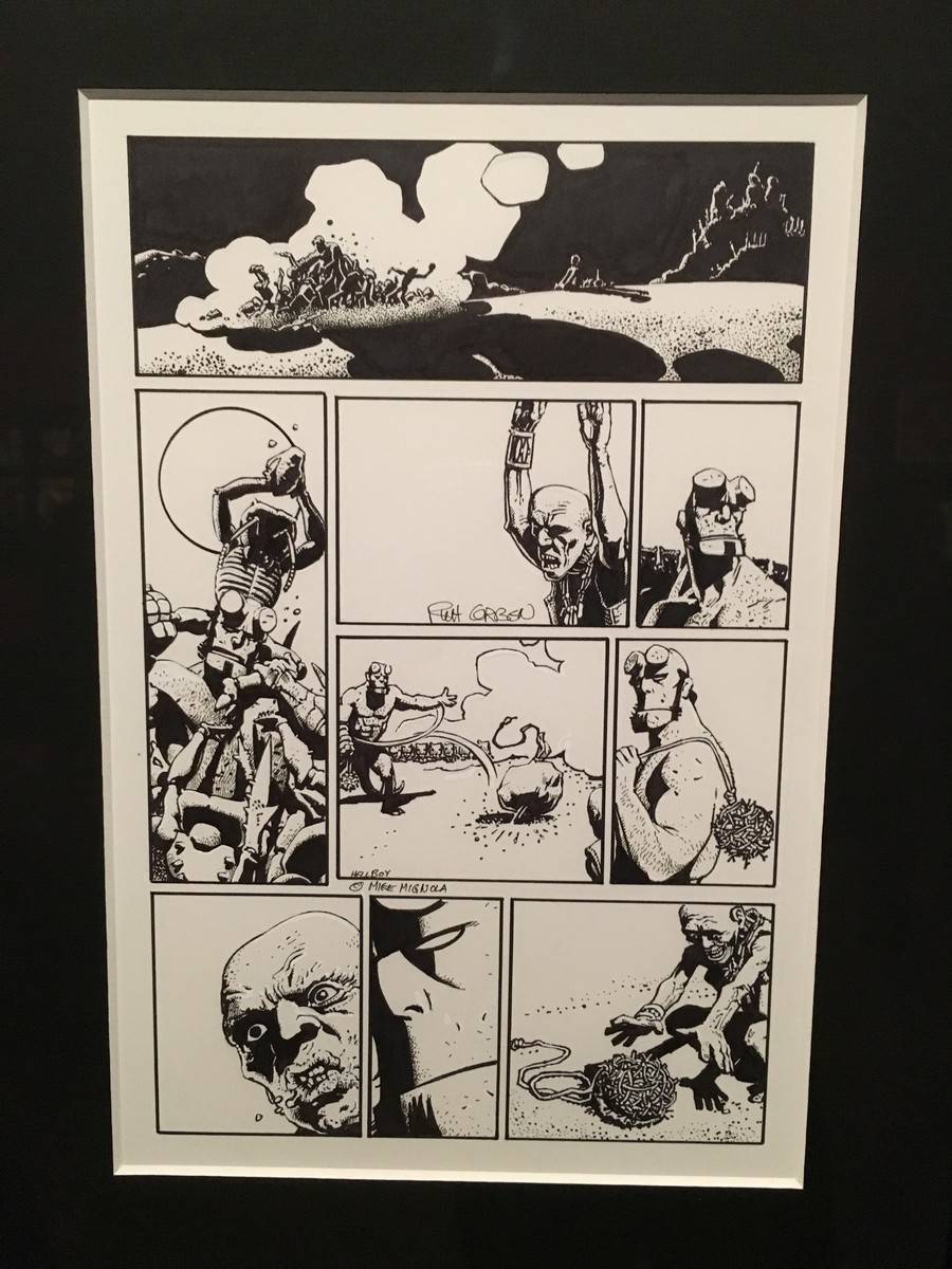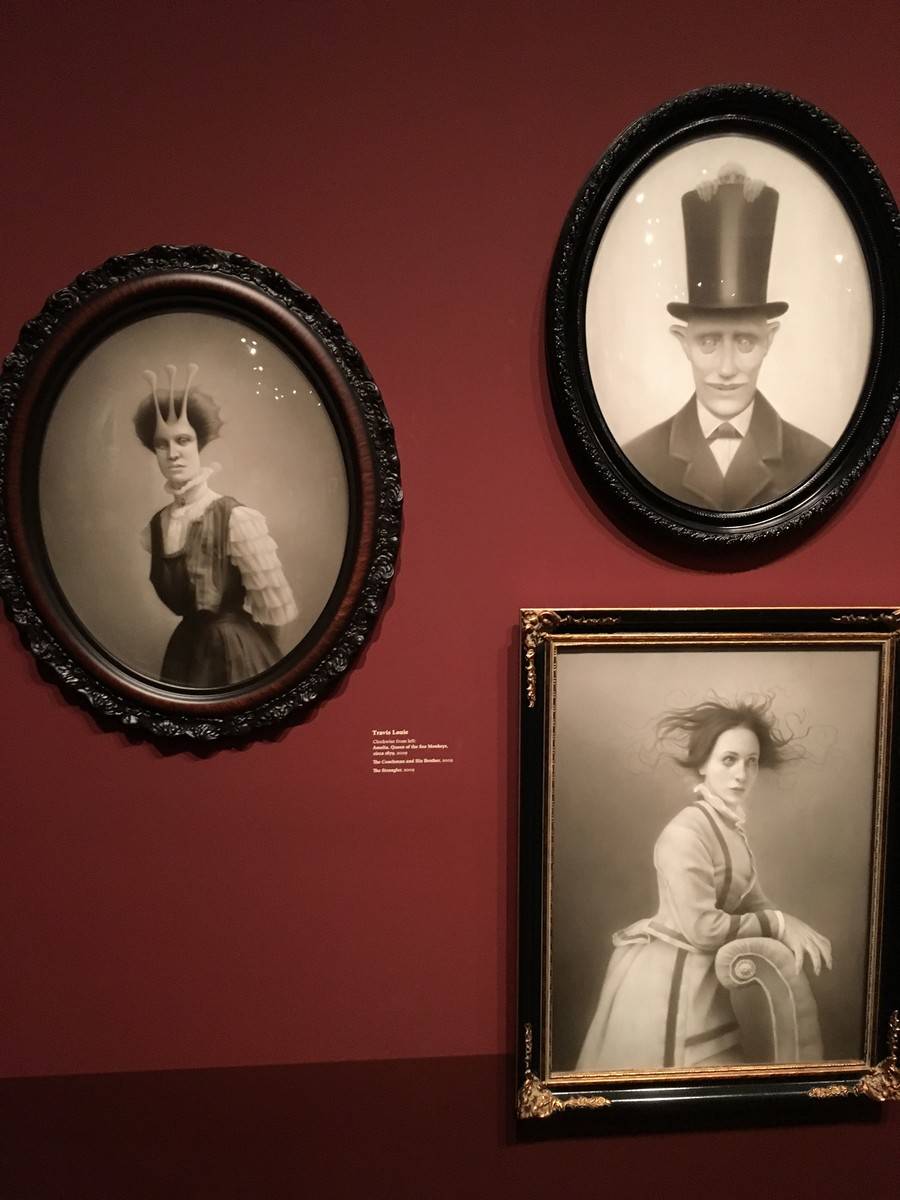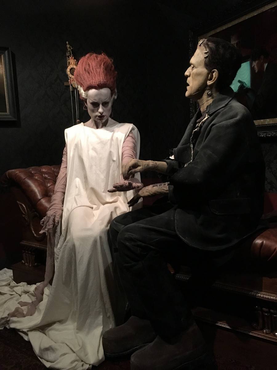 Now brace yourself. Because below, we’ve got tons and tons of photos and a bit of video to share with you from the exhibit, which is being called “At Home With Monsters.” Everything from original props, storyboards & concept art from all of del Toro’s own movies, original art from famous Disney films and attractions, the incredible life size sculptures of Tom Kuebler and Mike Hill, full room tributes to Frankenstein, Edgar Allan Poe, H.P. Lovecraft and so much more. Let’s start with a 2 minute video culled from little bits I captured on my iPhone.