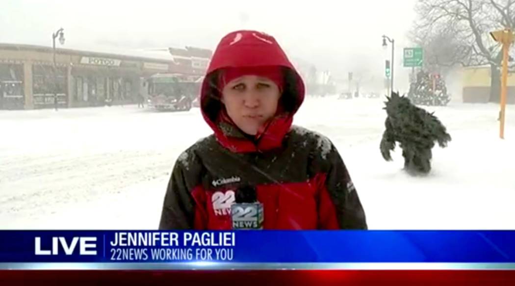 The footage and video seen here were captured during a live broadcast from 22 News Meteorologist Jennifer Pagliei in Springfield, Massachusetts, who was reporting on a massive snowstorm in the region… when things suddenly got weird.