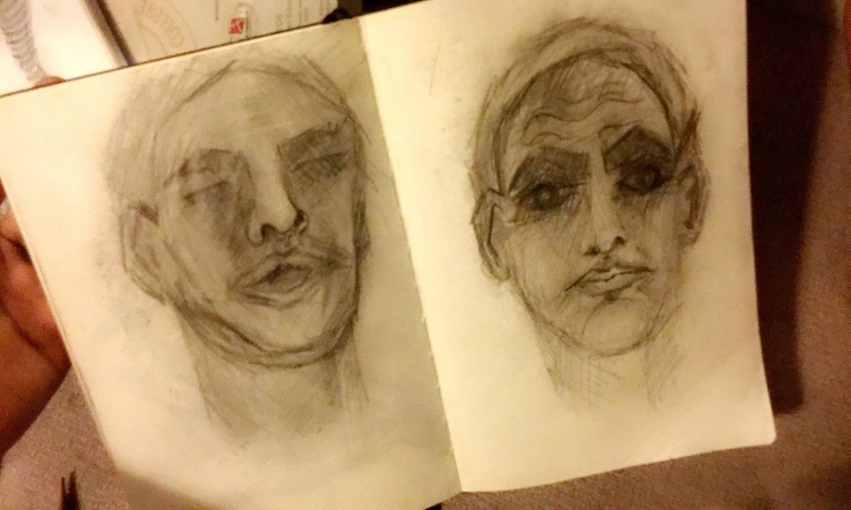 In my dream, I was stuck in a room sitting on a stool. A few feet away from me there was a television set. I was “visited” by two men I had never seen before and they both attacked me. I woke up covered in sweat and tears and I was screaming. I somehow fell asleep [again], then found myself back in the room. I started screaming and crying. Then “This Man” showed up on the screen. I begged him to not harm me. He didn’t change his blank expression or speak. He slit my throat and I woke up. I suppose he let me out of the nightmare… but I couldn’t stop thinking about him for weeks. I still have some of the sketches I drew of him.