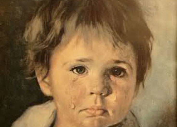 The stories of the Crying Boy paintings were all the same: a fire would break out in a home - almost always an explainable accident, like kitchen fire or bad wiring - and the Crying Boy paintings remained on charred walls, completely unharmed by the fire.