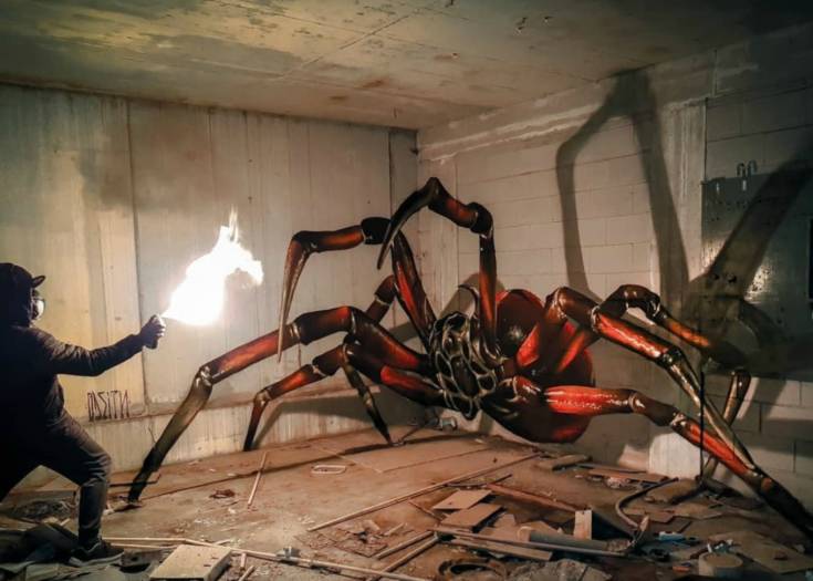 This Artist’s Humongous Graffiti Spider is Horrifyingly Awesome