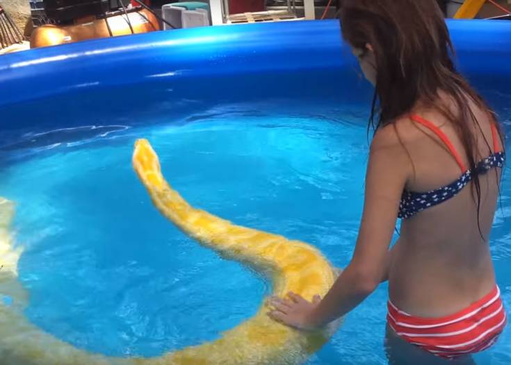 Watch This Fearless Girl Play in the Pool with a GIGANTIC Python